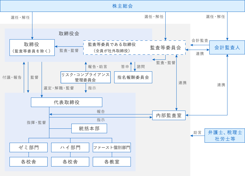 当社は企業統治の体制として監査等委員会設置会社を採用しております。これは、社外取締役を含めた取締役会が業務執行の状況を監督し、監査等委員が経営の意思決定に加わることで取締役会の監督機能を強化することで、コーポレート・ガバナンス体制の充実を図るためであります。